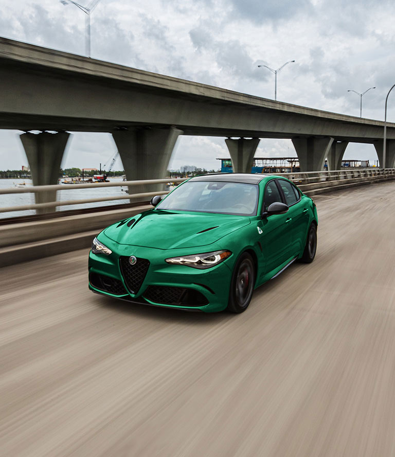 Descubra el poder de la confianza con un Alfa Romeo Giulia Quadrifoglio. Rendimiento excepcional, distribución de peso casi perfecta, par de torsión en tiempo real y gestión de la potencia. Todo lo que necesita para conseguir esa sensación propia de un circuito de carreras dondequiera que conduzca.
